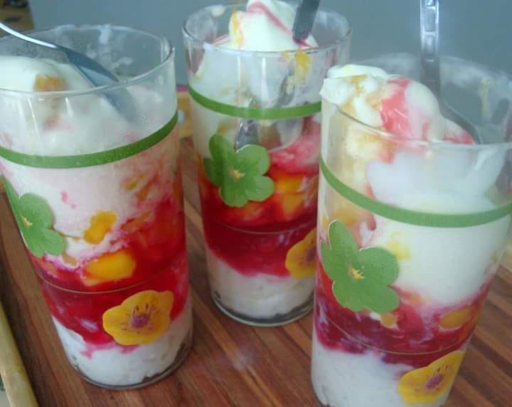ഇനി ഒരു ഗ്ലാസിൽ സെറ്റ് ചെയ്യാം ആദ്യം ഒരു സ്പൂണ് സേമിയ അല്പം വെള്ളത്തോടെ ഗ്ലാസില് ഒഴിക്കുക. ശേഷം സാബൂനരിയും പാലും കൂടിയത് ഒരു സ്പൂണ് ഒഴിക്കുക. പിന്നെ കഷങ്ങളാക്കിയ ജെല്ലി കുറച്ച് ഇടുക ശേഷം കസ്കസ് കുറച്ച് വിതറുക.എന്നിട്ട് നല്ല സ്റ്റൈൽ ആയി മുറിച്ചു വച്ച ഫ്രൂട്ട്സ് ചേർക്കുക ( ഈ ഫ്രൂട്ട്സ് മുറിച്ചു തണുപ്പിക്കാൻ ഞാൻ പറയണ്ടാലോ നിങ്ങക്ക് അറിയാമെന്നു എനിക്ക് അറിയാ അല്ലാണ്ട് പറയാൻ മറന്നു പോയതൊന്നും അല്ല 😑) അവസാനം വാനില ഐസ്ക്രീം ചേർക്കുക മുകളിൽ ഒരു ചെറി കൂടി വച്ചോളൂ,